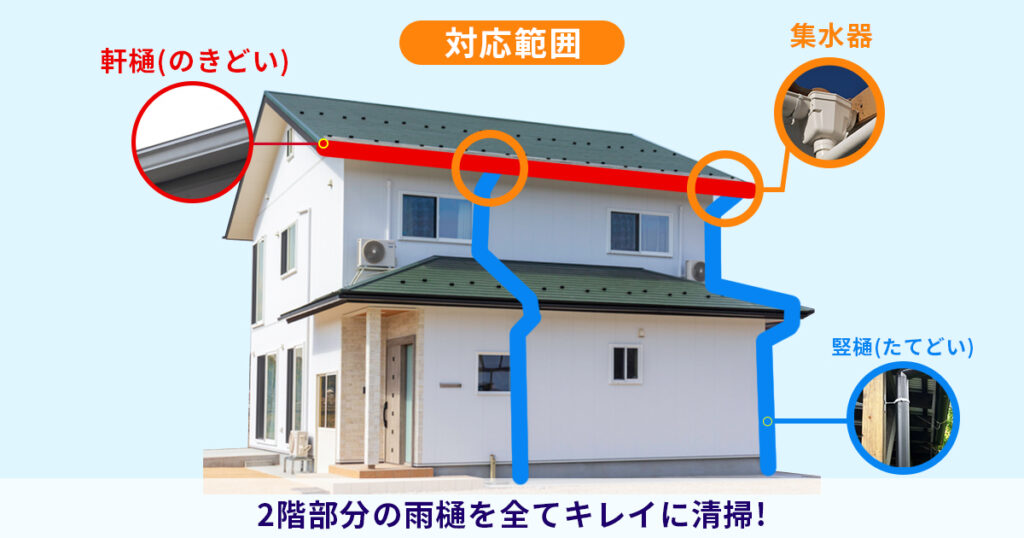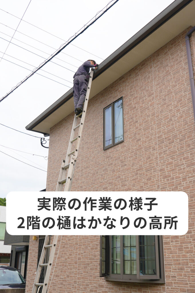 当社は雨樋掃除の専門会社として、日々たくさんの現場で作業しており高所作業に精通したプロ集団です。 ご自身でやられて、少しでも危ないなと感じた場合、私たちにお任せください。色々と手はありますので、まずは一度ご相談下さい。Googleマップを見ながら簡易的に対応出来るできないの判断も可能です。