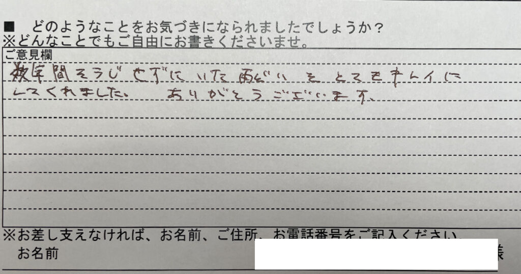 作業前後の違いを写真で見せてくれて納得感のある仕事でした。また機会があればお願いしたいです。
