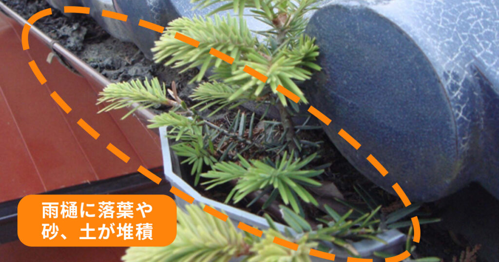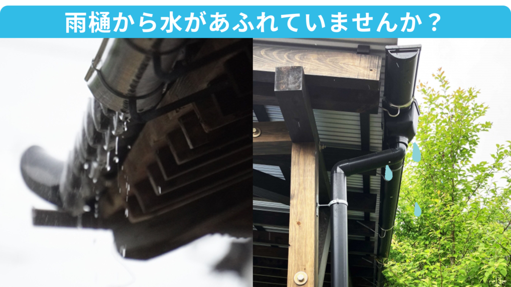 下から見たとき割れ・歪み・破損は一切見られないのに「少しの雨でも雨樋から雨水が溢れる」「雨が上がった後もしばらくポタポタ落ちてくる」…それは雨樋の詰まりが原因かもしれません。