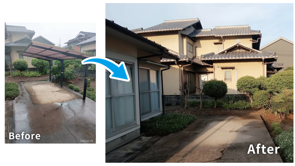 使わなくなったカーポートが場所を取っていて、車の出し入れが毎回ストレスでした。駐車スペースが広がり快適になりました。