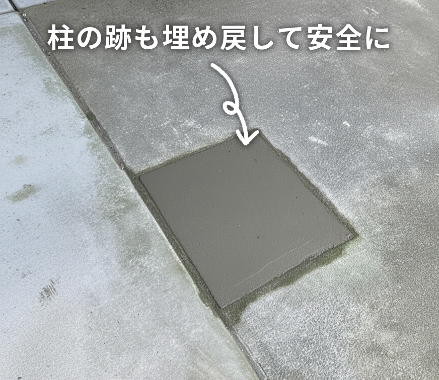固着したボルトの対応や養生、搬出経路の確保、近隣への配慮まで含めてスムーズに進められるため、短時間で「危険がなくなる・見た目がスッキリする・スペースが使える」状態に整えられます。