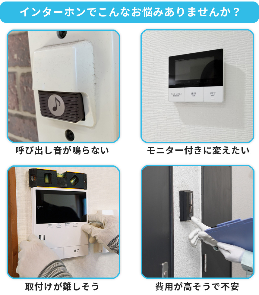 メッセージ:最近、「呼び出し音が鳴らない」「画面が映りにくい」「ボタンの反応が悪い」といったインターホンのご相談が増えています。