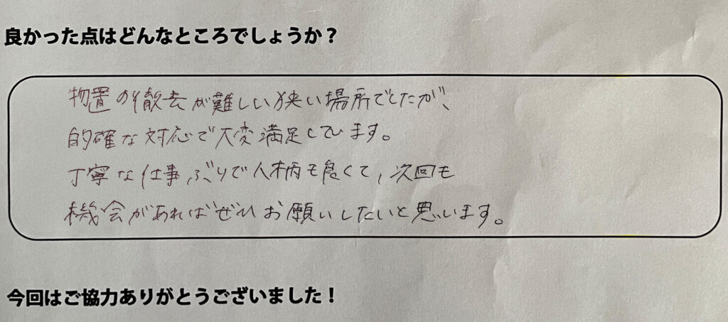 お客様からは「自分で処分できなくて困っていた」「こんなにキレイになるとは思っていなかった!」とお喜びの声を頂いてます!